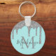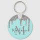 Chic Aqua Aquamarin Silver Sparkle Glitzer Tropfen Monogram Schlüsselanhänger mit glamourösen Imitate Glitzer Tropfen und Ihrem individuelle Name und initiale auf einem modernen türkisfarbenen aquamarin aqua blauen Hintergrund. Du tropfst in Luxus, also zeig es dir! Ideal für Bachelorette oder Brautmädchen Geschenke, oder benutzen Sie nur eines für sich selbst, Mädchen! Wenn Sie Hilfe oder passende Artikel benötigen, kontaktieren Sie uns bitte unter cedarandstring@gmail.com