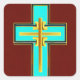 Aqua und Gold kreuzen auf rotem Hintergrund. Erstellt mit KI-Software.