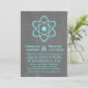 Niedliche und nerdige Atomic Chalkboard Wedding Einladung mit einem einfachen atomaren Symbol in Türkis auf einem Chalkboard-Look Hintergrund. Diese geeky und lustige Hochzeitseinladung ist perfekt für das wissenschaftliche Fan-Paar! Einfach anzupassen, fügen Sie einfach die Details Ihrer Hochzeit in den Bereichen zur Verfügung gestellt. Klicken Sie auf "Anpassen", um weitere Personalisierungsoptionen zu erhalten.