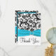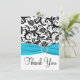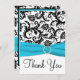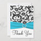 Diese schwarz-weiße Damaskus Dankeschön-Karte hat ein Aqua-Blau PRINTED Band und PRINTED Diamond-Schmuckbrosche, die perfekt für eine aqua-und schwarz-themed Hochzeit wäre. ****BITTE BEACHTEN SIE, wenn Sie die Schriftart oder die Größe des Schriftartes ändern, wird ein Teil des Designs und/oder Textes möglicherweise abgeschnitten. Alles wird gedruckt, wie Sie es auf Ihrem Monitor sehen. Ich werde keine Änderungen sehen, die Sie vornehmen, und Zazzle wird nichts korrigieren (Tippfehler, falsche Ausrichtung usw.). Der Text ist alle anpassbar. Wenn Sie Hilfe zu diesem Produkt benötigen, schicken Sie mir bitte eine E-Mail, bevor Sie Ihre Bestellung aufgeben. Wenn Sie weitere passende Artikel benötigen, senden Sie Ihre Anfrage bitte an niteowlstudio@gmail.com