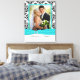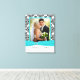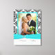 Diese Leinwand aus schwarz-weißem Damast-Foto hat ein Aqua-Blau-IMITAT-Band und einen Juwelierbrosche, die zu der unten abgebildeten Hochzeitseinladung passt. Laden Sie Ihr eigenes Foto hoch, um einen wunderschönen Tag oder ein Jubiläum zu genießen. Es wäre auch ein schönes Geschenk für die Neuvermählten, die Eltern von Braut und Bräutigam oder Großeltern.