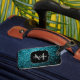 Personalisieren Sie Imitate funkelnd Gepäcksack Tag mit Ihrem Initial und Namen. Schöne mädchenhafte hellblaue glänzende Glitzer Glitzern. Foto von cyan blauen Glitzern nicht wirklich Glitzer!