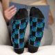 Aqua-blaue Glitzern-Rautenmuster schwarz Monogramm Socken