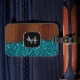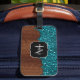 Aqua-blaue Glitzern, rustikal-braunes Holz Monogra Gepäckanhänger