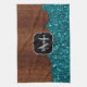 Personalisieren Sie Imitate funkelnd mädchenhafte Teeküche Handtuch mit Ihrem Initial und Namen. Aqua blaue Glitzern gebrochen rustikal braunes Holz. Elegante Imitate funkelnd aquablaue Glitzern mit gebrochenem rustikal braunem Holzstück darüber. *Foto von Glitzern nicht wirklich Glitzer!