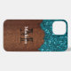 Aqua-blaue Glitzern, rustikal-braunes Holz Monogra iPhone Hülle