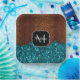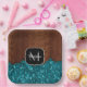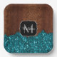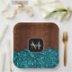 Aqua-blaue Glitzern, rustikal-braunes Holz Monogra Pappteller