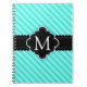 Blaues diagonales Streifenmuster des modernen Aqua mit stilvollem schwarzem Fahnenrahmenentwurf in der Mitte für Ihre kundengebundene Monogramminitiale.