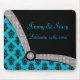 Aqua-blauer u. schwarzer Damast-Edelstein-Schein Mousepad