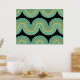 Schönes zeitgenössisches Aqua, türkisfarben, blau, jadegrün, und echtes goldfarbenes geometrisches abstraktes Wellenmuster auf einem schwarzen Hintergrund. Elegantes, stilvolles und eklektisches minimalistisches Design für den künstlerischen angesagten Trendsetter, Vintage Retro-Kunststil oder abstrakten geometrischen Motivliebhaber. Entdecken Sie dieses Design mit den Farben der Innendekoration und dekorieren Sie Ihre Wand mit etwas Exklusivem und Einzigartiges an Ihrer Wand!