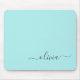 Aqua Blue Aquamarin Girly Script Monogram Name Mod Mousepad