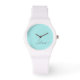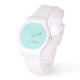 Aqua Blue Aquamarin und White Simple Script Monogram Name Watch. Dies macht den perfekten Abschluss, Geburtstag, Hochzeit, Brautparty, Jubiläum, Babydusche oder Junggeselinnen-Abschied Geschenk für jemanden, die Lieben glamourösen Luxus und schicke Stile.