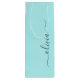 Aqua Blue Aquamarin Modern Script Monogram Name Geschenktüte Für Weinflaschen
