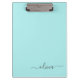 Aqua Blue Aquamarin Modern Script Monogram Name Klemmbrett