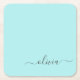 Aqua Blue Aquamarin Simple Script Monogram Name Paper Untersetzer. Dies macht den perfekten Abschluss, Geburtstag, Hochzeit, Brautparty, Jubiläum, Babydusche oder Junggeselinnen-Abschied Geschenk für jemanden, die Lieben glamourösen Luxus und schicke Stile.