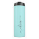 Aqua Blue Aquamarin Modern Script Monogram Name Thermosbecher