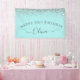 Aqua Blue Aquamarin Silver Glitzer Monogram Banner