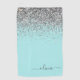 Aqua Blue Aquamarin und Silber Sparkle Glitzer gebürstetes Metall Monogram Name Golf Handtuch. Das macht den perfekten 16 Geburtstag, Hochzeit, Brautparty, Jubiläum, Babydusche oder Junggeselinnen-Abschied Geschenk für jemanden, der Lieben glamourösen Luxus und schicke Stile.