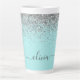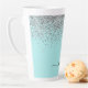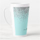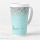 Aqua Blue - Aquamarine und Silber Imitate Foil Metallic Sparkle Glitzer Script Monogram Name Latte Coffee Cup Tasse. Das macht den perfekten 16 Geburtstag, Hochzeit, Brautparty, Jubiläum, Babydusche oder Junggeselinnen-Abschied Geschenk für jemanden, der Lieben glamourösen Luxus und schicke Stile.