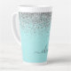 Aqua Blue Aquamarin Silver Glitzer Monogram Milchtasse
