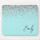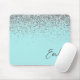Aqua Blue Aquamarin Silver Glitzer Monogram Mousepad