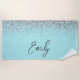 Aqua Blue Aquamarin Silver Glitzer Monogram Strandtuch