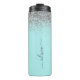 Aqua Blue Aquamarin Silver Glitzer Monogram Thermosbecher