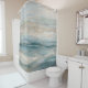 Aqua Blue Beige Aquamarine Creme Abstrakt Wave Mus Duschvorhang