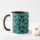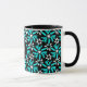 Aqua Blue & Black Batik Blume Muster Monogram Tasse
