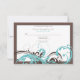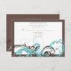 Aqua Blue, Brown Floral Wedding Repcard RSVP Karte
