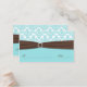 Diese Aqua-blaue, weiße und braune Damastecard mit IMITAT-Band und Juwelen passt zu der unten gezeigten Hochzeitseinladung. Wenn Sie weitere passende Artikel benötigen, schicken Sie mir bitte eine E-Mail.