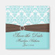 Aqua Blue, Brown, White Damask Save the Date Magnet