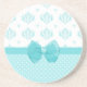 Aqua Blue Damask mit türkisfarbenem Ribbon Sandstein Untersetzer