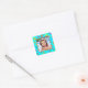 Fotovorlagenaufkleber für ein Party oder eine Veranstaltung im Sommer. Die quadratischen Aufkleber sind in zwei Größen erhältlich und können als Umschlag Aufkleber verwendet werden oder als Geschenktüten oder Kinderkleidung im Party verwendet werden. Aqua blau, mit Muster von Sommerdingen. Das Design ist perfekt für die Geburtstagsparty eines Mädchens.