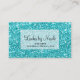 Aqua Blue Glitzer Chic Glam Glitzy Salon Wellness-Center Business Card