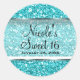 Aqua Blue Glitzer Glam Sweet 16 Custom Gastgeschen Runder Aufkleber