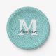 Aqua Blue Glitzer & Sparkle Monogram Paper Plate Pappteller