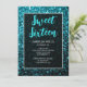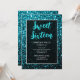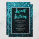 Aqua Blue Glitzern Sweet 16 elegante Schrift Einladung