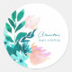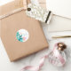 Custom Boho Aqua Blue und Emerald Green Watercolor Floral Baby Shower Classic Round Sticker