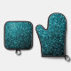 Aqua Blue Imitats Glitzer Glitzern Ofenhandschuh & Topflappen-Set