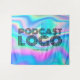 Fügen Sie Ihren eigenen modernen Stil bunten Podcast oder Vlogger Business Logo Werbefilm großen Wandteppiche. Passen Sie den Stil, die Größe und die Farbe des Schriftartes an, um Ihren geschäftlichen Bedürfnissen gerecht zu werden ... oder löschen Sie es und zentrieren Sie Ihr Logo. Erstellen Sie Ihre eigene Werbe-Wandkunst für Ihr Podcast oder Video Content Creator Studio. Der Hintergrund zeigt einen Farbverlauf pour blended Farbe Design mit Aqua, blau, aquamarin grün, heiß rosa und andere holografische Farben in einer Wirblen Mischung. Dies ist ein irisierendes Holograph digitales Bild ist eine Mischung aus ombre Stil Design, das wie ein Foto drucken wird.