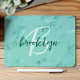 This elegant personalized mouse pad features a monogram and first name in modern script on an aqua blue background marbled with faux foil veins.