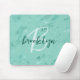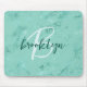 Aqua Blue Marble Foil Script Monogram Mousepad