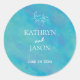 Aqua Blue Ocean Wedding Individuelle Name Runder Aufkleber