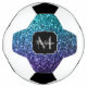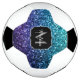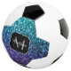 Personalisieren Sie Imitate funkelnd trendige Girly Sport Equipment Fußball-Ball mit Ihrem Initial und Namen. Schöne mädchenhafte dunkelblaue und hellblaue Glitzer Glitzern Aqua blauen ombre Sommerfarben. Wir verwenden Foto von blauen Glitzern, nicht Glitzer! Imitate Glitzern!