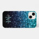 Trendige Sommer Farben mädchenhafte Handy-Gehäuse: Monogram Personalisieren Sie mit Ihrem individuelle Name. Schöne mädchenhafte dunkelblaue und hellblaue Glitzer Glitzern. Foto von cyan und dunkelblau Glitzern nicht wirklich Glitzer!