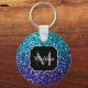 Aqua blue Ombre Imitats Glitzer Glitzern Monogram Schlüsselanhänger