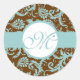 Monogram New Sizes Elegant Vintag Aqua Blue Damask on Brown Wedding Einladung-