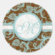 Monogram New Sizes Elegant Vintag Aqua Blue Damask on Brown Wedding Einladung-