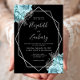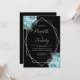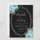 Aqua Blue Silver Floral Black Wedding Einladung